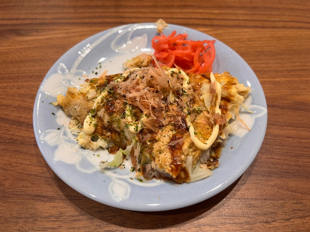 ④食べたい大きさに切り分けてお皿によそい、お好みでかつおぶし、青のり、ソース、マヨネーズをかけたら完成✌