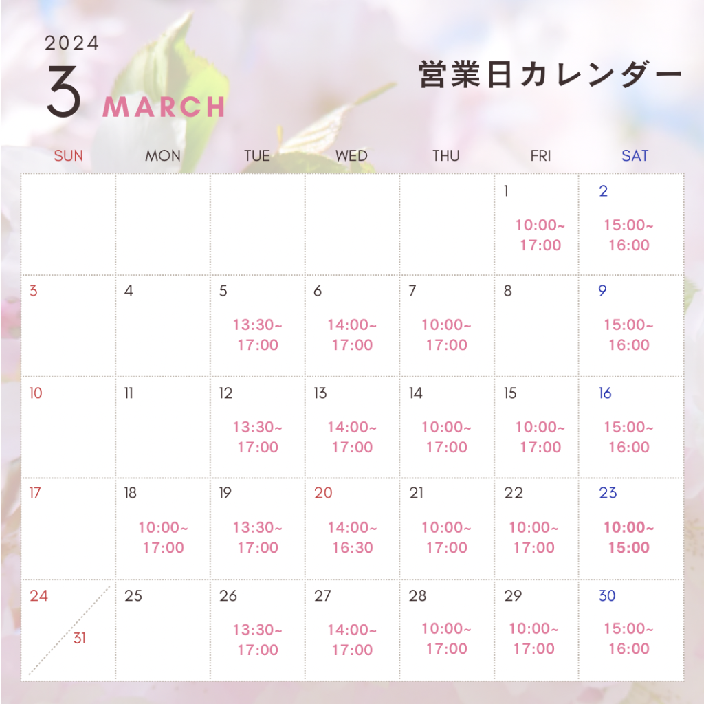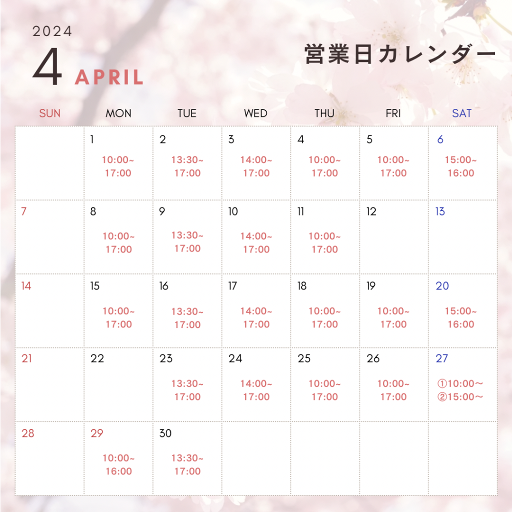 ありがたいことに、月曜以外はご予約枠が埋まりやすくなってきております🙇♀️