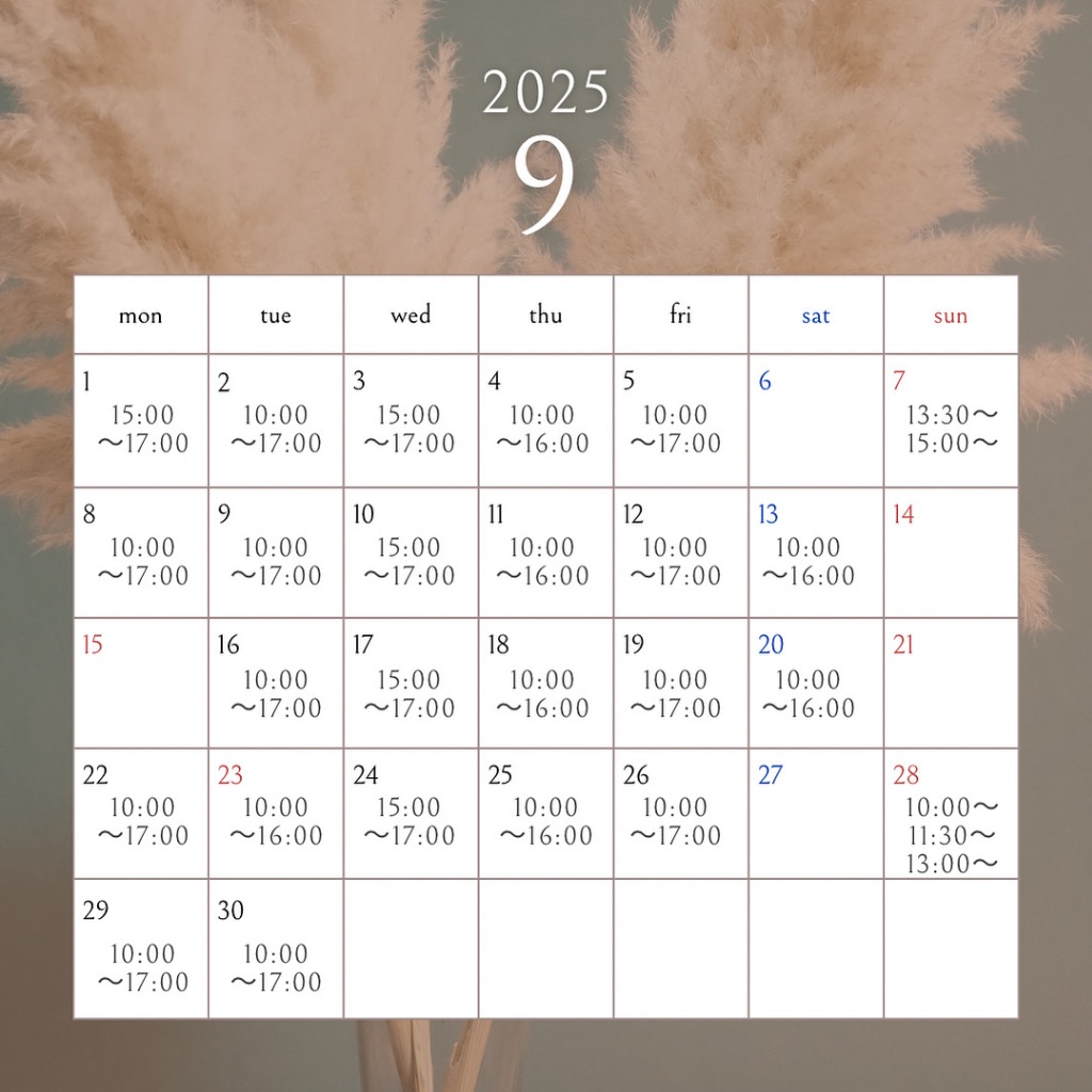 9月の営業日のご案内🗓️