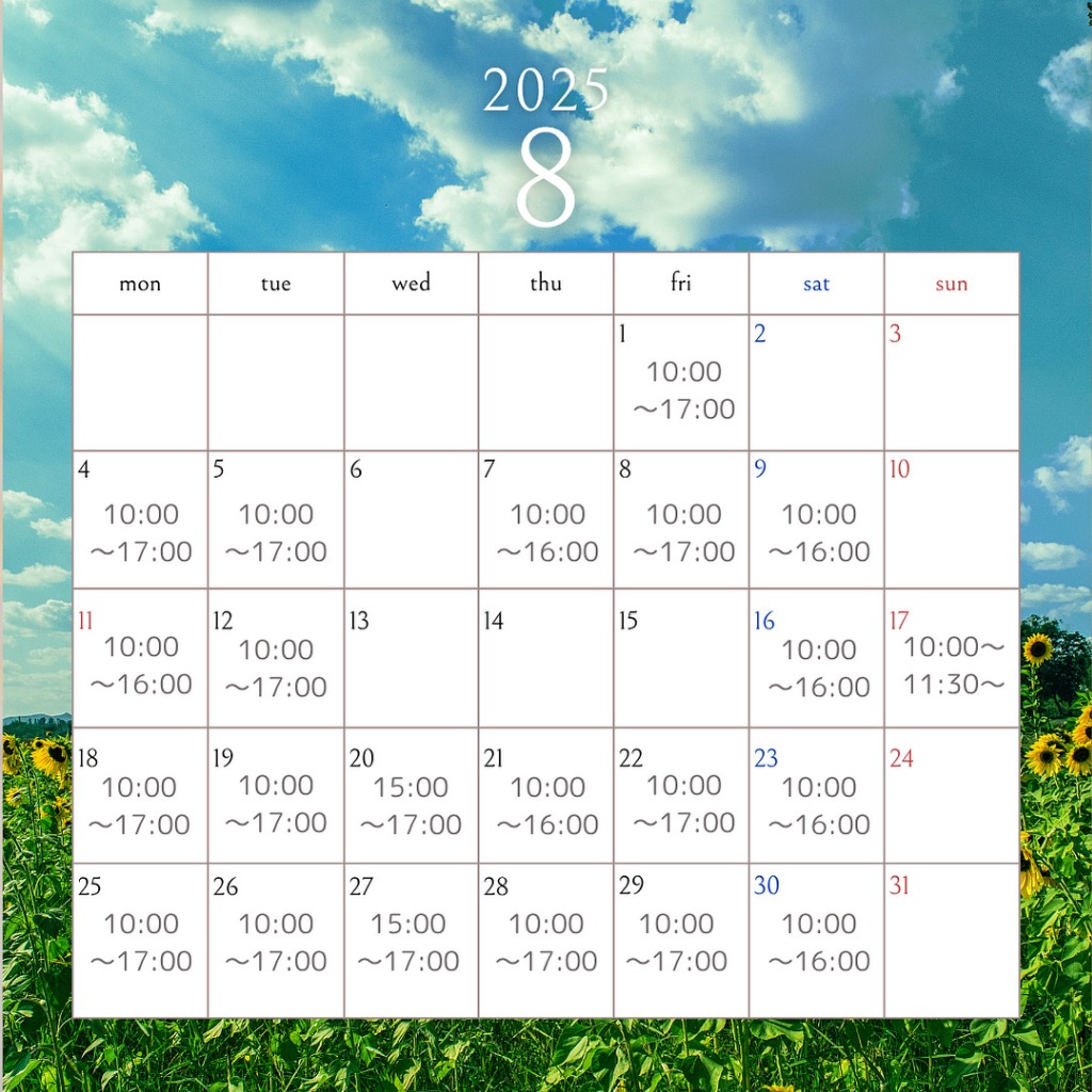 8月営業日のご案内📅