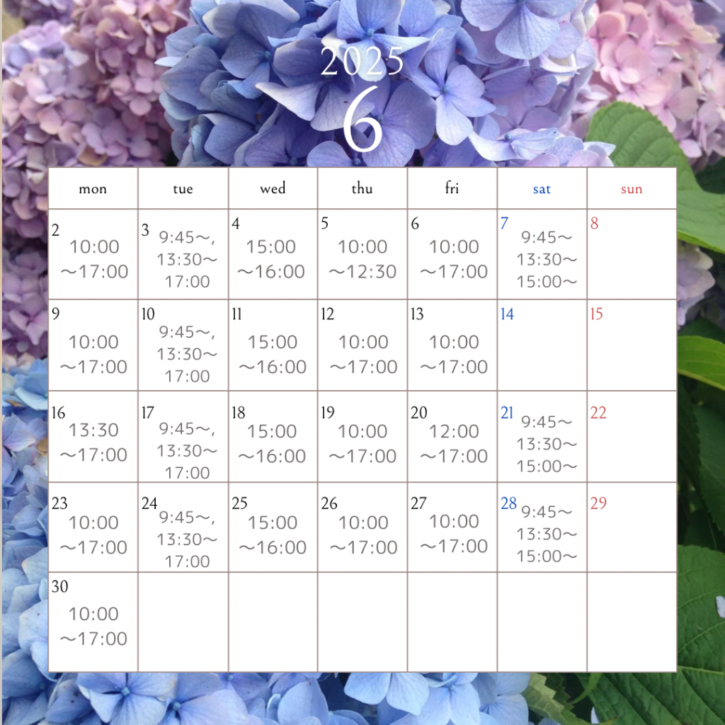 6月の営業日のご案内🗓️