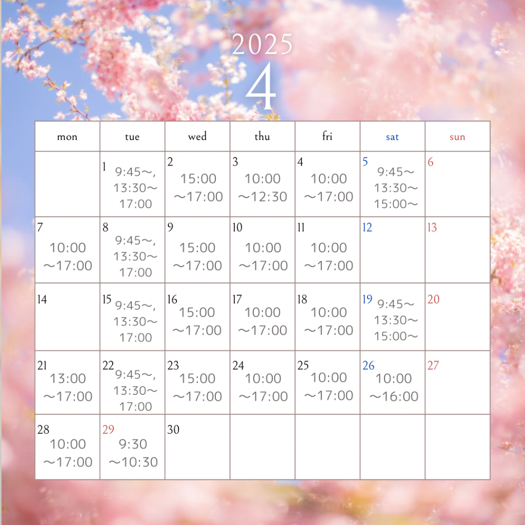 4月の営業日のご案内🗓️
