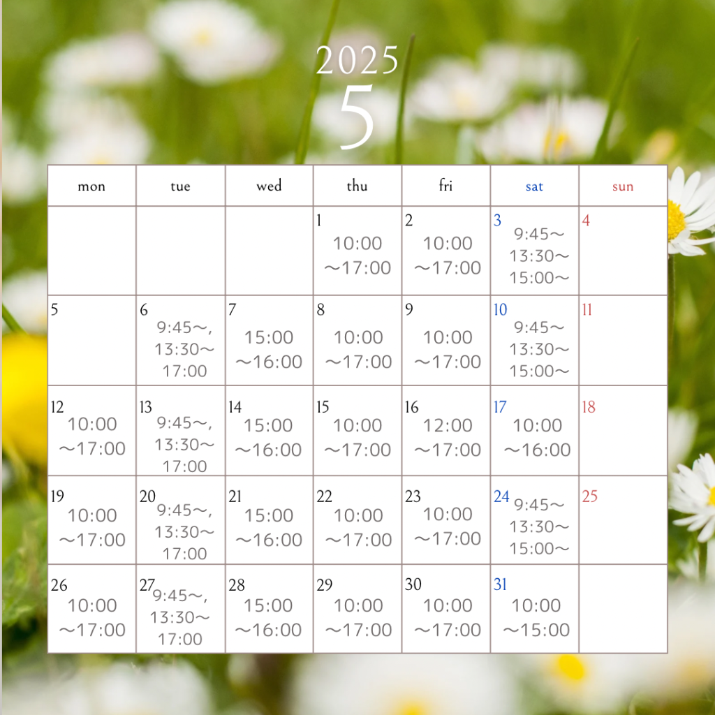 5月の営業日のご案内🗓️