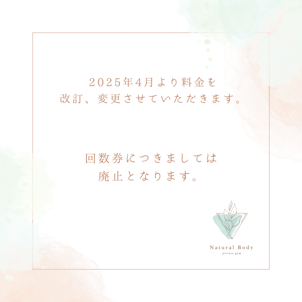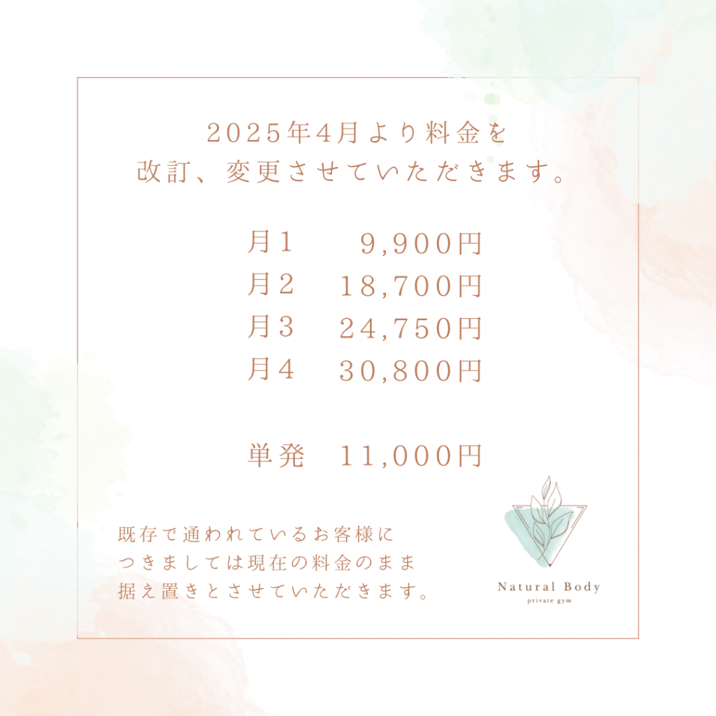 4月1日より料金の改訂、変更をさせていただきます。